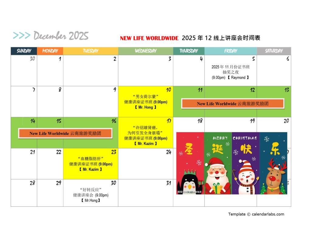 2025年12月份健康讲座证书班报名表格: https://www.newlifeworldwide.asia/regtalk